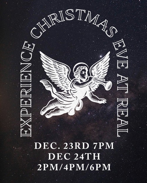 Hey! This Christmas, want to come to REAL Church with me? Dec 23 (7p) or Dec 24 (2p, 4p, 6p). Come with me to Christmas at REAL! You'll love it!